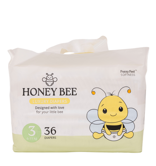 حفاضات Honey Bee مصممة لتوفير الراحة والجفاف لصغيرك. بفضل نعومة Fuzzy Feel™ والمواد القابلة للتنفس، حفاضاتنا ناعمة للغاية لتمنح طفلك أفضل شعور بالراحة